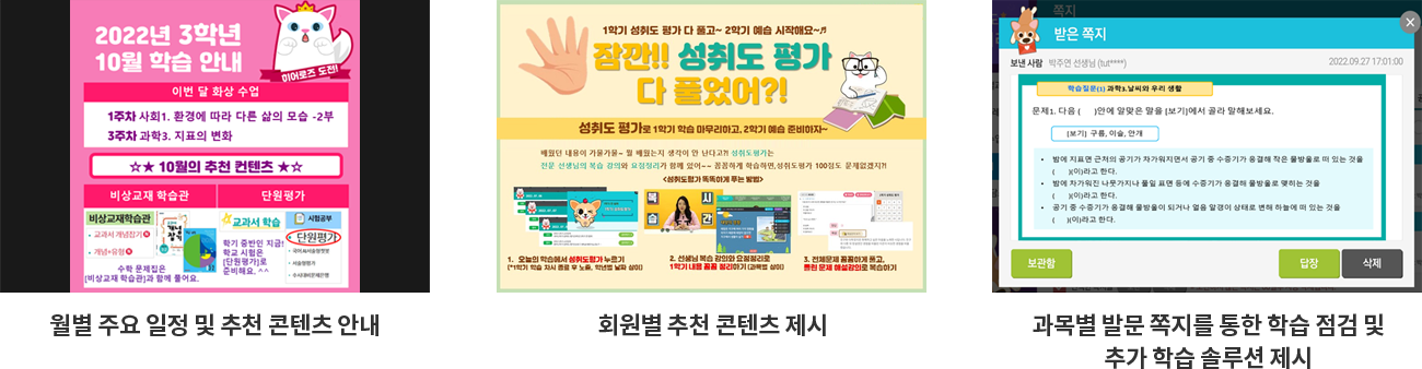 ¾ÆÀÌÀÇ ¼ºÇâ°ú ÇнÀ ÇöÇâÀ» ¾ö¸¶º¸´Ù ´õ ²Ä²ÄÇÏ°Ô Ã¼Å©ÇÏ¿© ÀÚ±âÁÖµµ ÇнÀ ´É·ÂÀ» ¿Ï¼º½ÃÄÑ ÁÝ´Ï´Ù.